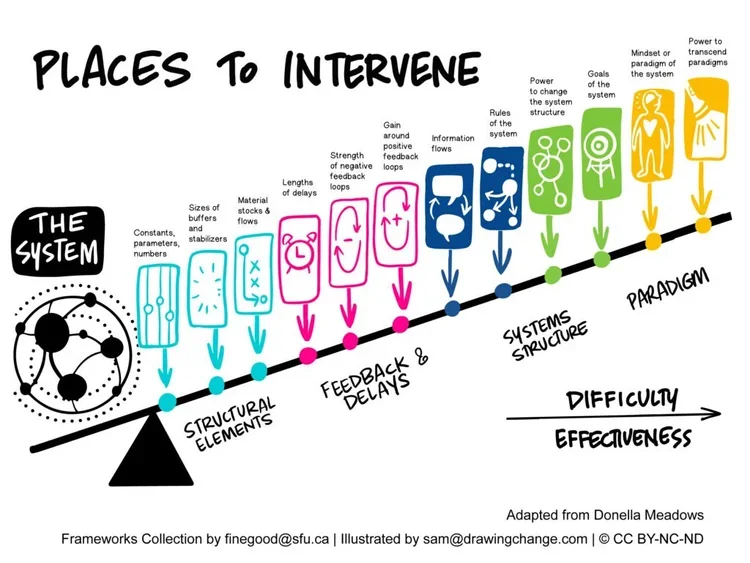 Or find a more concise summary of the leverage points from this article - Leverage points: places to intervene in the system